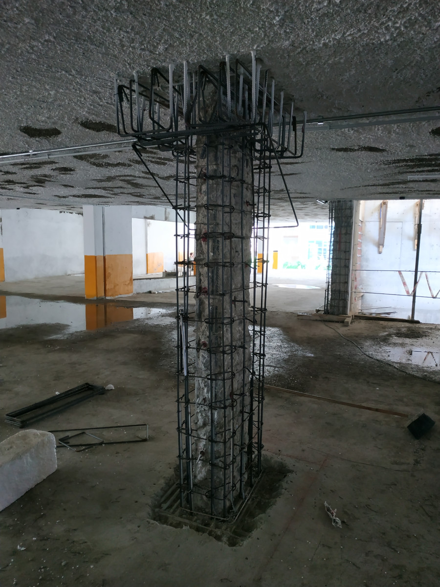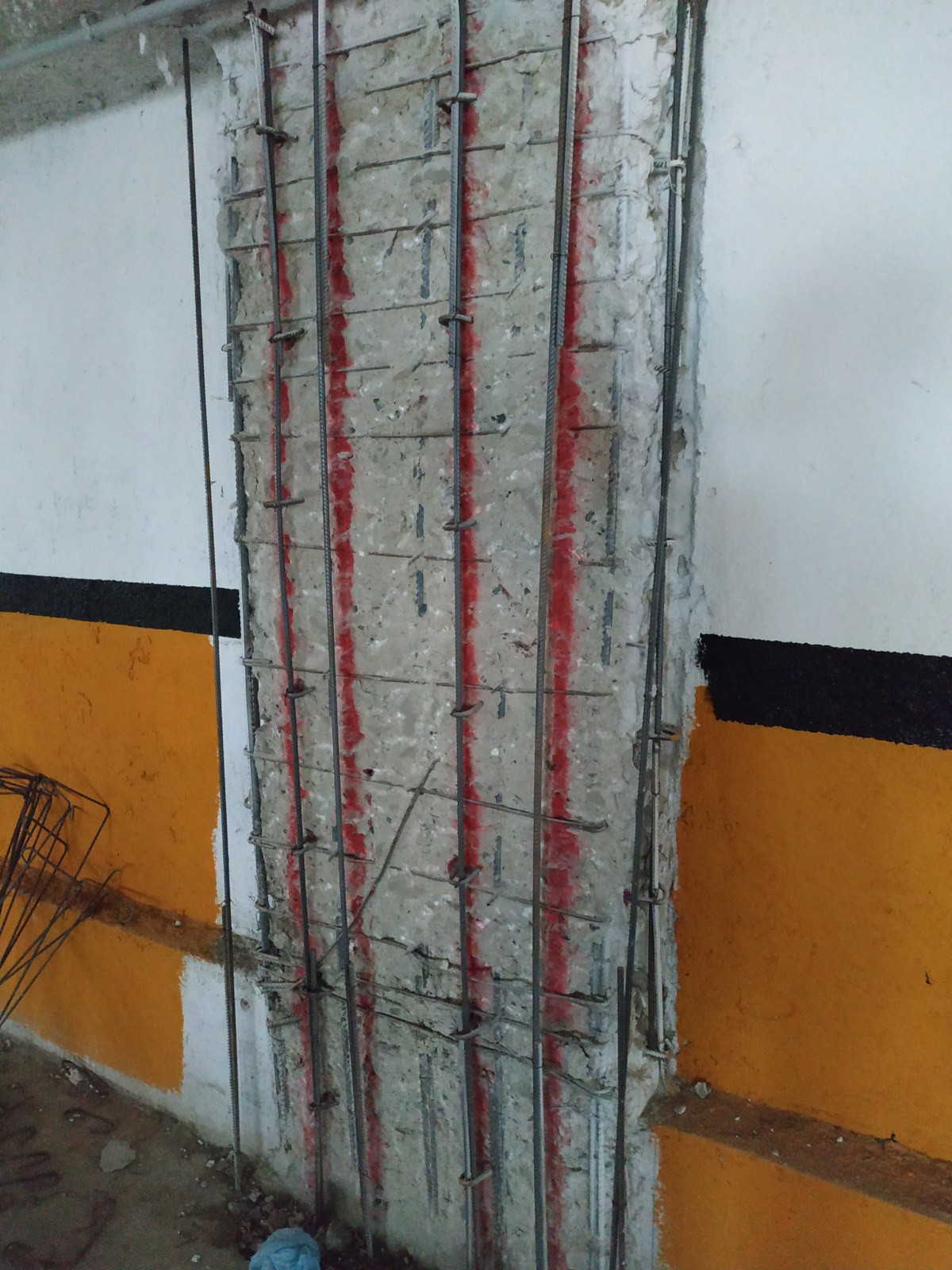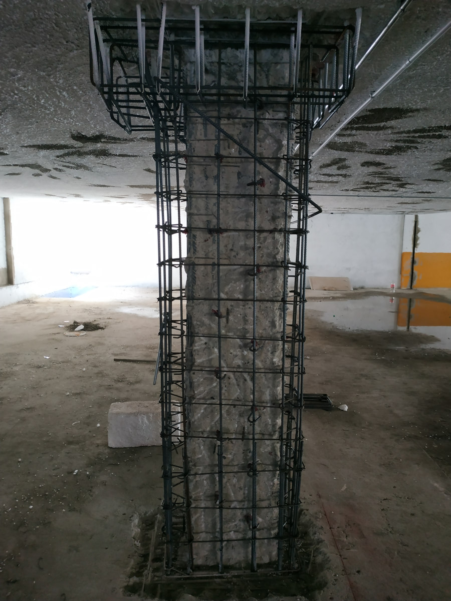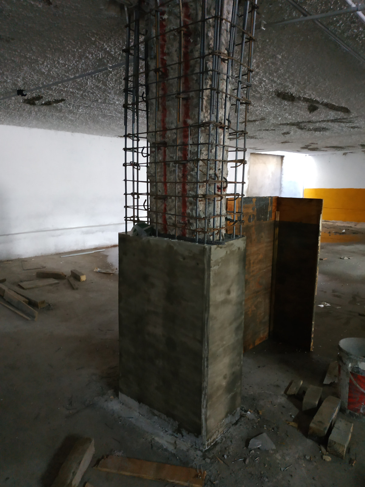 Se empleo el metodo de recrecido o "jacketing" para aumentar la resistencia de las columnas a traves de