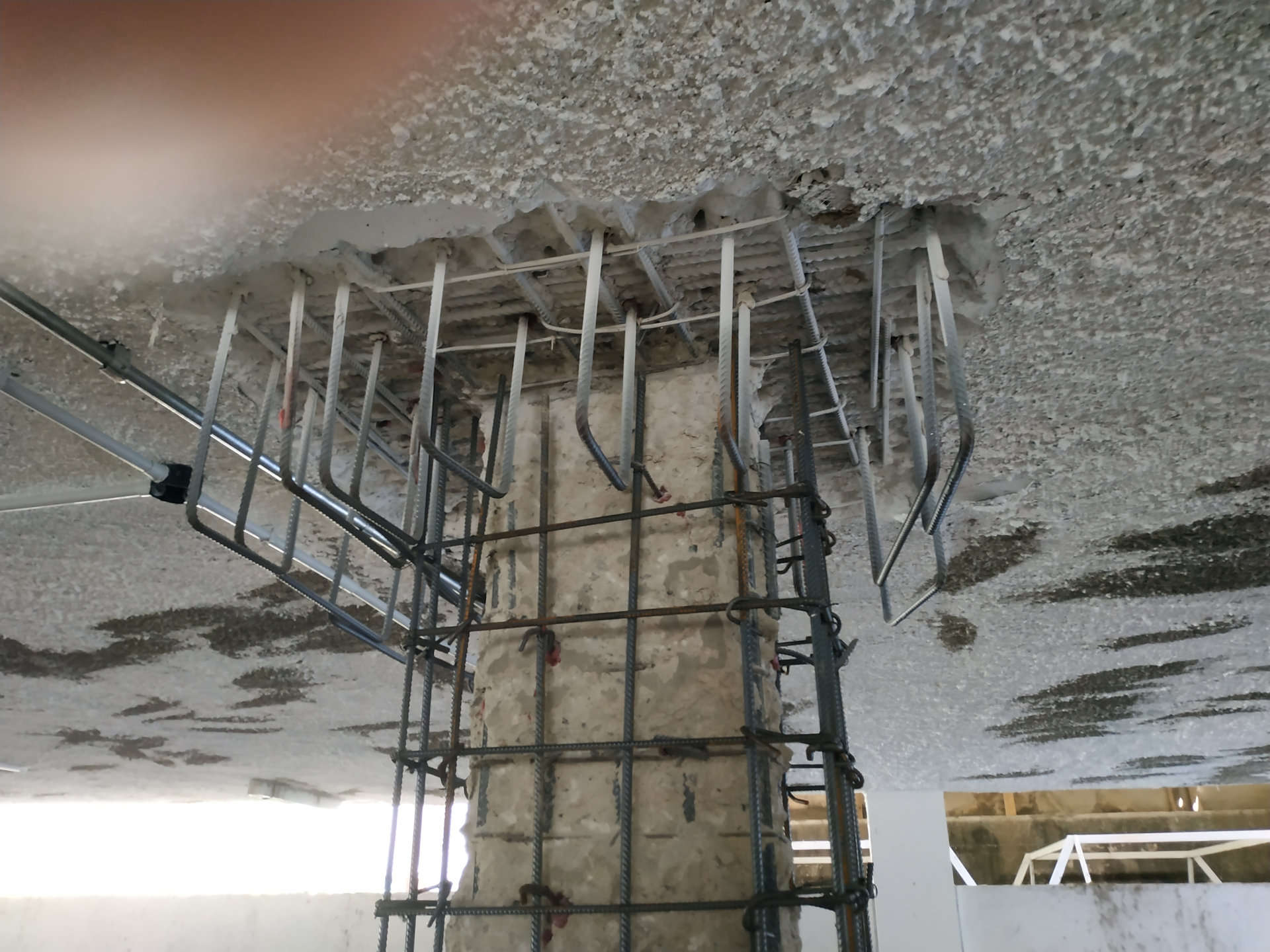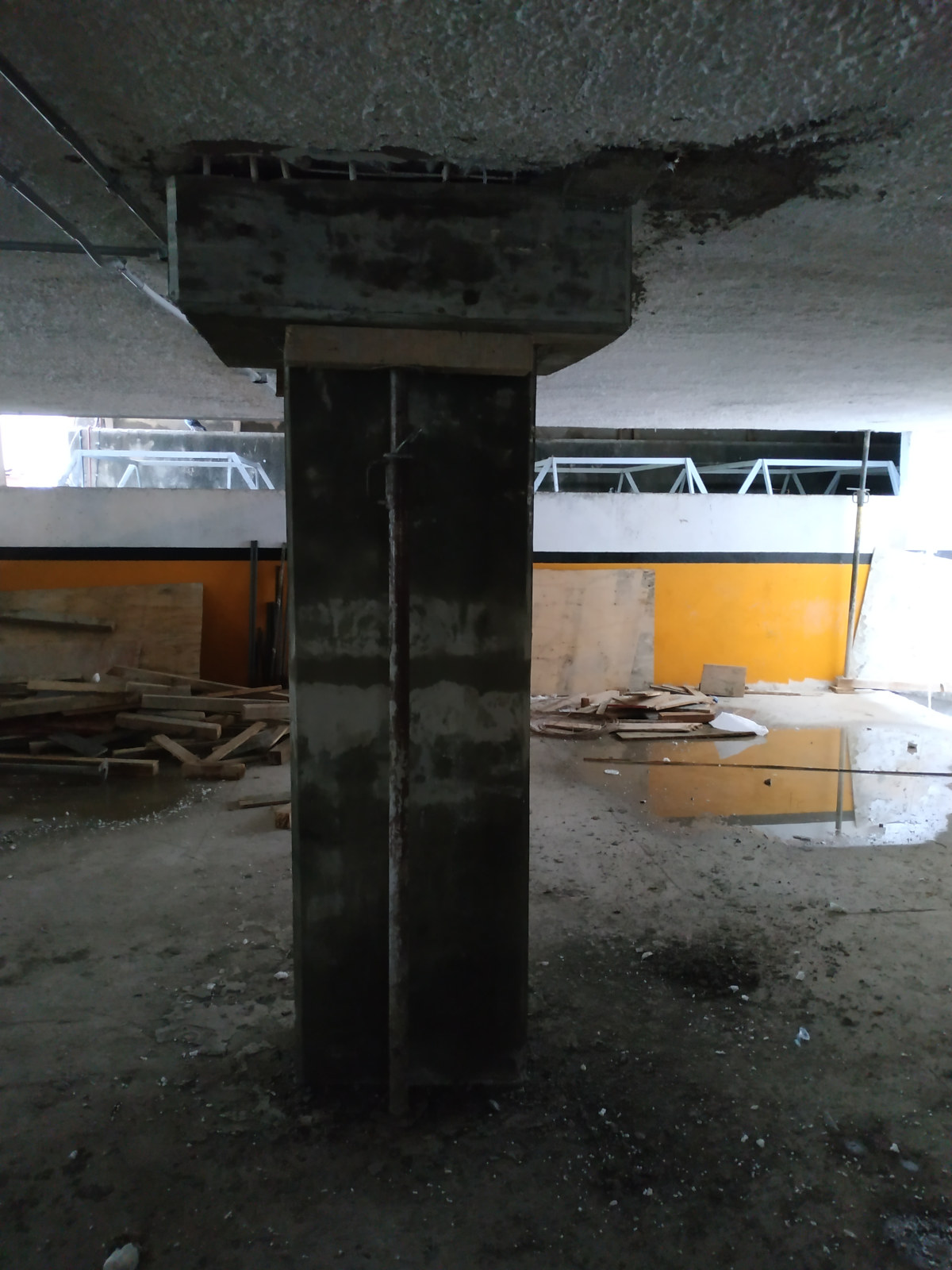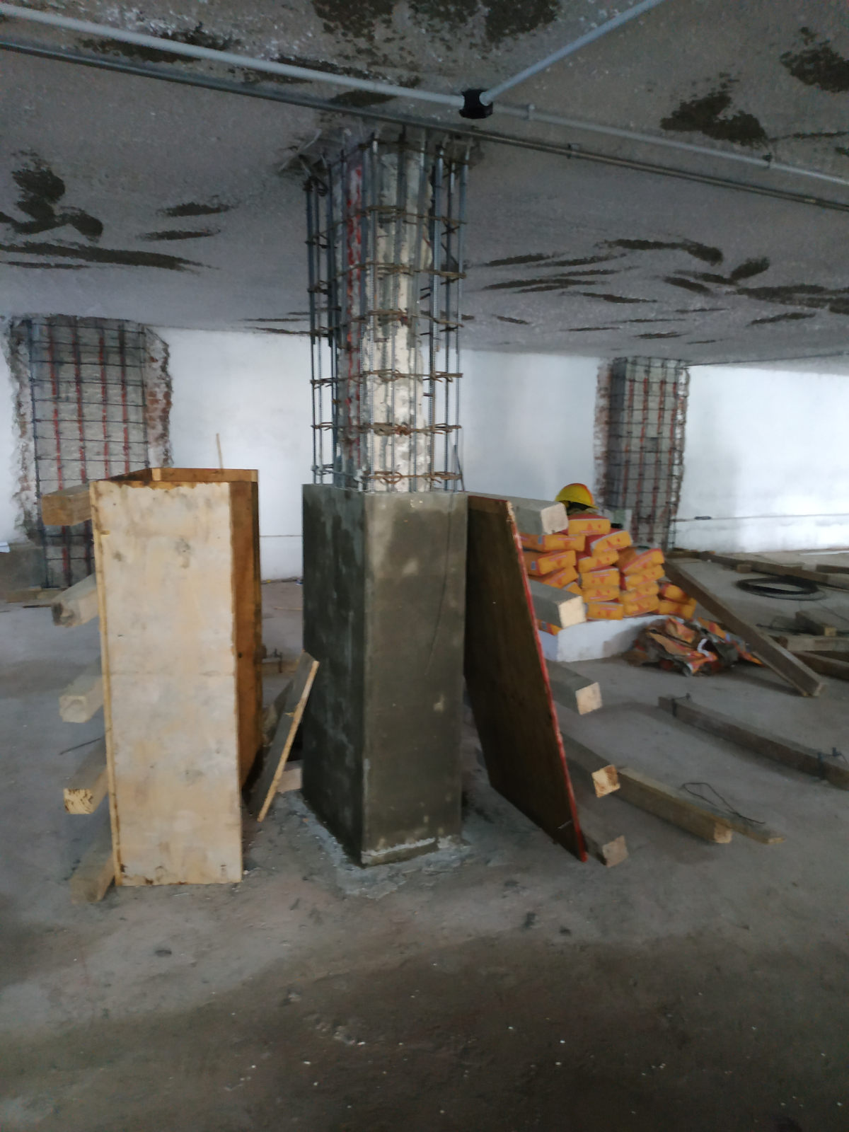 Se empleo el metodo de recrecido o "jacketing" para aumentar la resistencia de las columnas a traves de