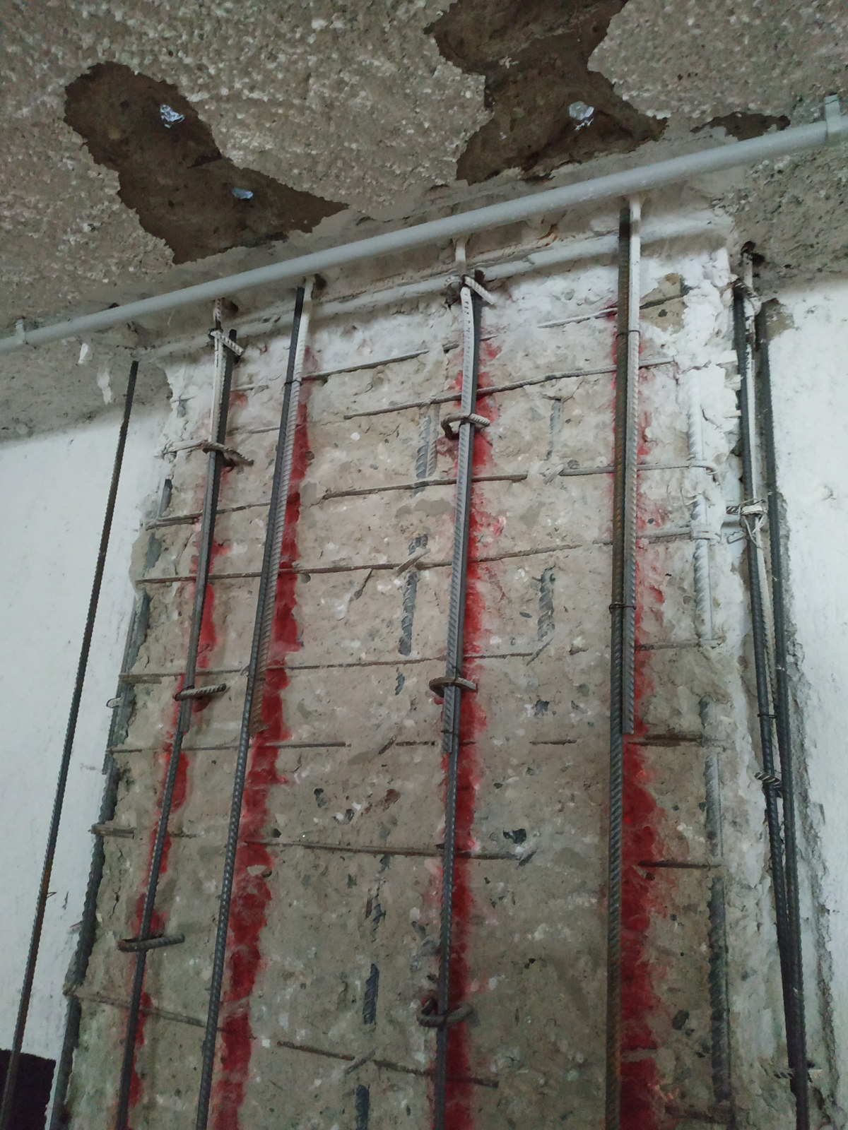 nueva armadura longitudinal y transversal, con el empleo de grouting especial.